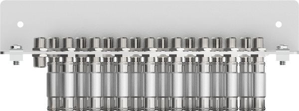 Erdungswinkel, 17-fach Erdung und Potentialausgleich gemäß EN 60728-11 am Teilnehmerausgang Für AXING Multischalter mit 32 Teilnehmerausgängen der Serie SPU x32-09N Bestückt mit premium-line F-Doppelbuchsen CFA 26-05