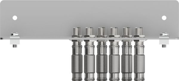 Erdungswinkel, 6-fach, Erdung und Potentialausgleich gemäß EN 60728-11, Bestückt mit premium-line F-Doppelbuchsen CFA 26-02 und Quickfix-Adaptern CFA 4-01N, Für AXING Multischalter SPU 912-09S an den Teilnehmerausgängen