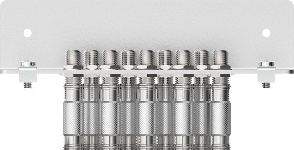Erdungswinkel, 9-fach, Erdung und Potentialausgleich gemäß EN 60728-11 am Teilnehmerausgang, Für AXING Multischalter mit 16 Teilnehmerausgängen der Serie SPU x16-09N, Bestückt mit premium-line F-Doppelbuchsen CFA 26-03
