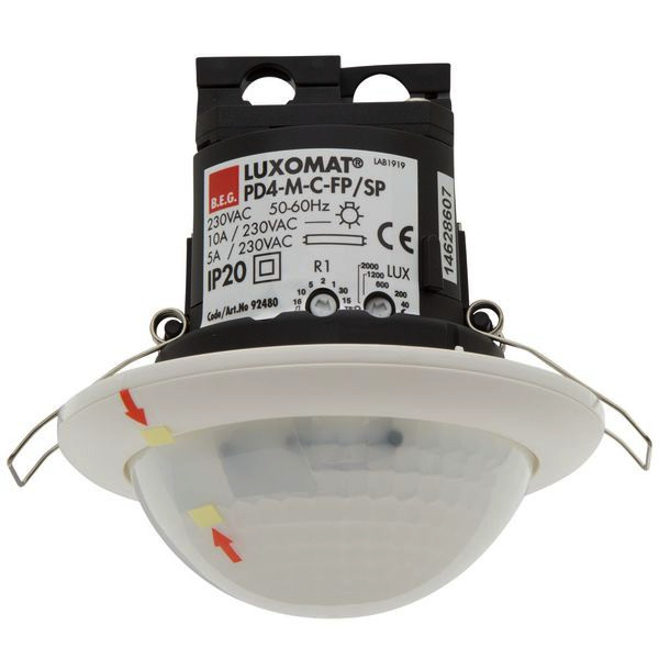 Präsenzmelder mit NO-Kontakt und Sicherheitsschaltung durch NC-Kontakt, Gewährleistet Beleuchtung auch bei Ausfall des Melders, Speziell für Korridore, Ausführung als Master-Gerät, Erweiterung des Erfassungsbereiches mit Slave-Geräten möglich, Manuelles Schalten über Taster möglich, Weitere Funktionen über optionale Fernbedienung einstellbar, Werkseinstellung 10 min und 500 Lux, Für die Ausrichtung des Melders sind Markierungen vorhanden