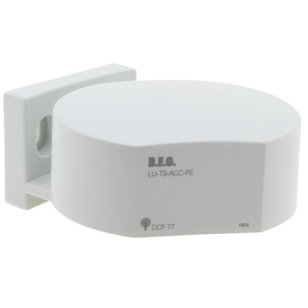 DCF 77 Funkempfänger für Zeitschaltuhren der Serie TS-DY, Empfang des DCF 77 Telegramm, An einen TS-ACC-FE können bis 10 digitale Schaltuhren parallel angeschlossen werden, Zeit und Datum werden automatisch in die digitalen Schaltuhren eingelesen, Sommerzeit-Umstellung über das DCF-Telegramm, Kontrolleuchte blinkt bei Empfang, Kleine, kompakte Bauweise, Einfache Montage, Gehäuse drehbar im Befestigungswinkel, Max. Leitungslänge zwischen TS-ACCFE und digitaler Schaltuhr 200m, Reichweite ca. 1500km