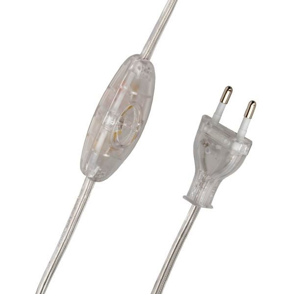 BAI Anschlusszuleitung mit Zwischenschalter 2x0.75mm² Transparent 2 meter (120/80) 2-adrig mit Eurostecker
