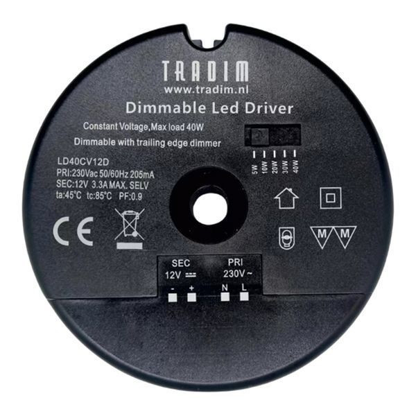 Tradim LD40CV12D LED Driver Rund 12V AC/DC 1-40W 105x32mm Loch Ø 10mm Dimmbar Phasenabschnitt (R,C)