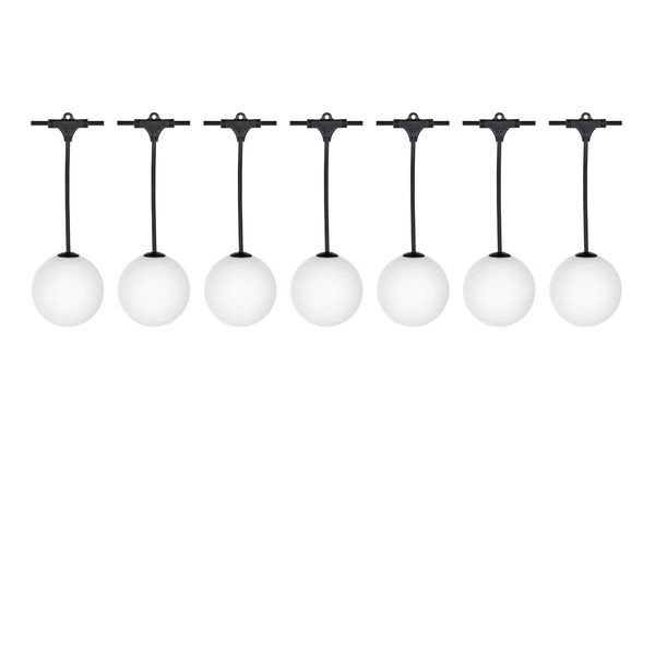BAI LED Party Balls Light String Pendant 7.3M 7x 1W 100lm G100 2500K 12W 230V zu 24VDC Kabel Schwarz 0.5mm2 Endverbinder 6mm jacket IP67