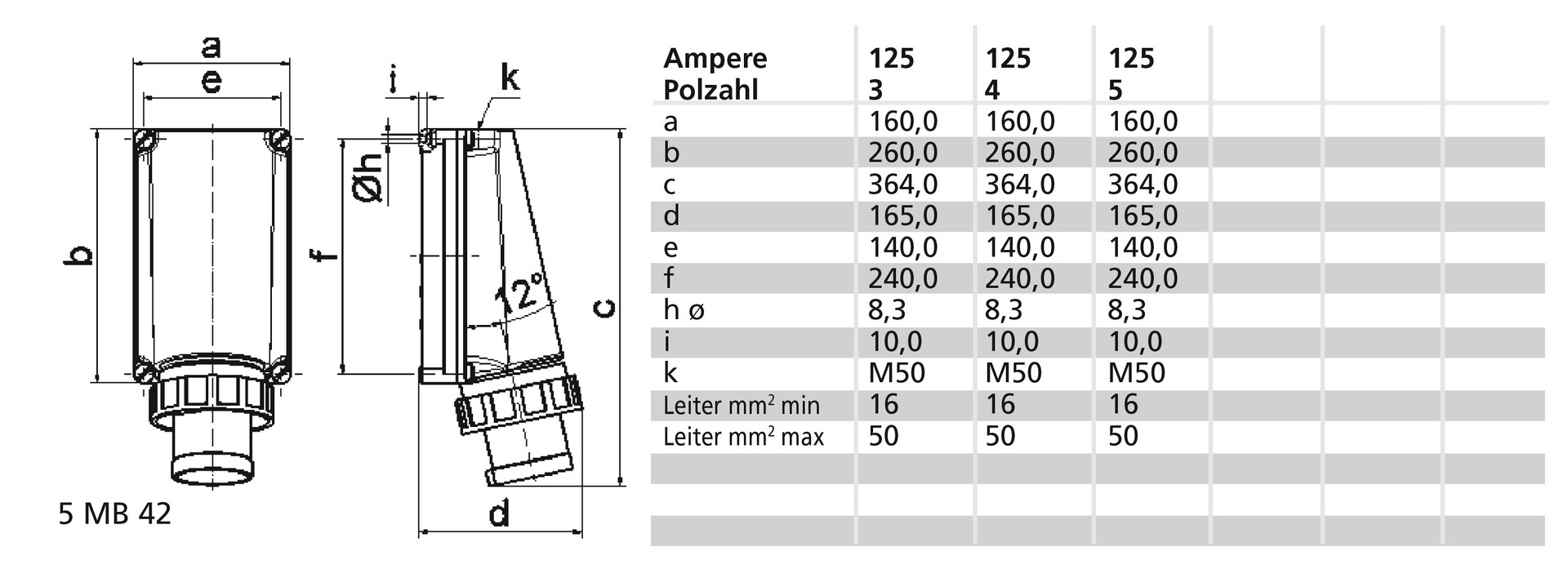 | Kurzbeschreibung | Wandgerätestecker 125A 4p 230V 9h, IP67 |
