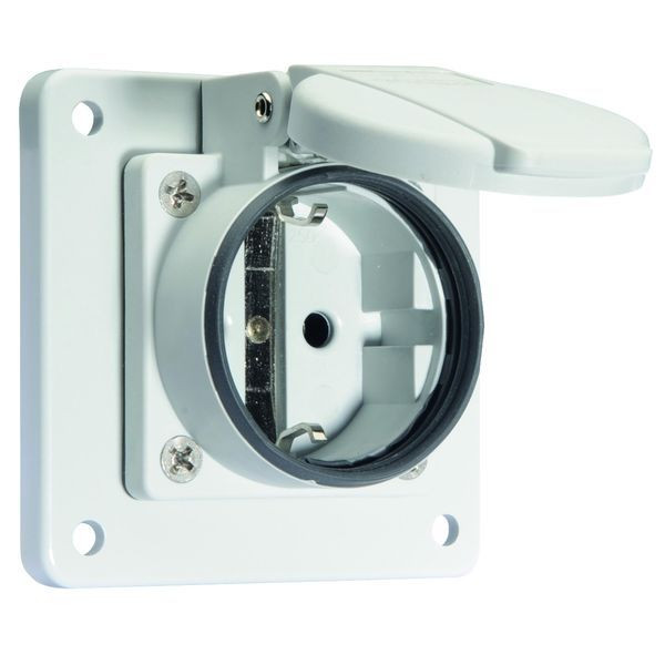 Schutzkontakt-Anbausteckdose 16A 3p (2P+PE) 250V (250V~) IP54 Frequenz: AC Technische Kennfarbe: grau RAL 7035 Kontaktträger/Kontakte: Der Kontaktträger ist aus Polyamid, Die Kontakte sind Messing vernickelt Maximaler Leiterquerschnitt: 4,0 qmm Gehäusematerial: Kunststoff Anschlusstechnik: Kopfschraubenklemme Kabeleinführung: sonstige Gerätefarbe: Klappdeckel grau RAL 7035, Gehäuse grau RAL 7035 Gerätehöhe: 75 mm, Gerätebreite: 75 mm, Gerätetiefe: 47,5 mm Flanschmaß vertikal: 75 mm, Flanschmaß horizontal: 75 mm Bohrlochabstand vertikal: 60 mm, Bohrlochabstand horizontal: 60 mm Halogenfrei: TRUE Sonstige technische Eigenschaften: Zur Verwendung in ortsveränderlichen Verteilersystemen, Der Anschluss ist rückwärtig, mit deutschem System