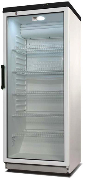 Kühlschrank mit Glastür zum Aufbewahren und Präsentieren von Lebensmitteln oder Getränken. Ideal für Bars, Kneipen und Restaurants. Automatisches Abtauen und automatische Wasserverdunstung. Ventilierte. Maximale Umgebungstemperatur 32°C. Doppelwandige Glastür und robuster Griff. Türschloss. Verstellbare Regale und Füße. Mechanische Steuerung mit Thermometer. Energieklasse E. Schuko-Stecker.