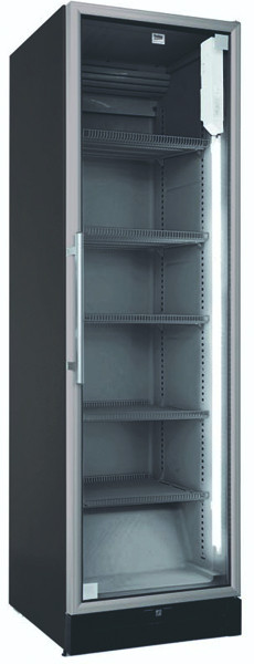 Kühlschrank mit Glastür zum Aufbewahren und Präsentieren von Lebensmitteln oder Getränken. Ideal für Bars, Kneipen und Restaurants. Automatisches Abtauen und automatische Wasserverdunstung. Ventilierte. Maximale Umgebungstemperatur 32°C. LED-Innenbeleuchtung. Doppelwandige Glastür und robuster Griff. Umkehrbare Tür. Türschloss. Türzarge aus Aluminium. Verstellbare Regale und Füße. Mechanische Steuerung mit Thermometer. Energieklasse D. Schuko-Stecker