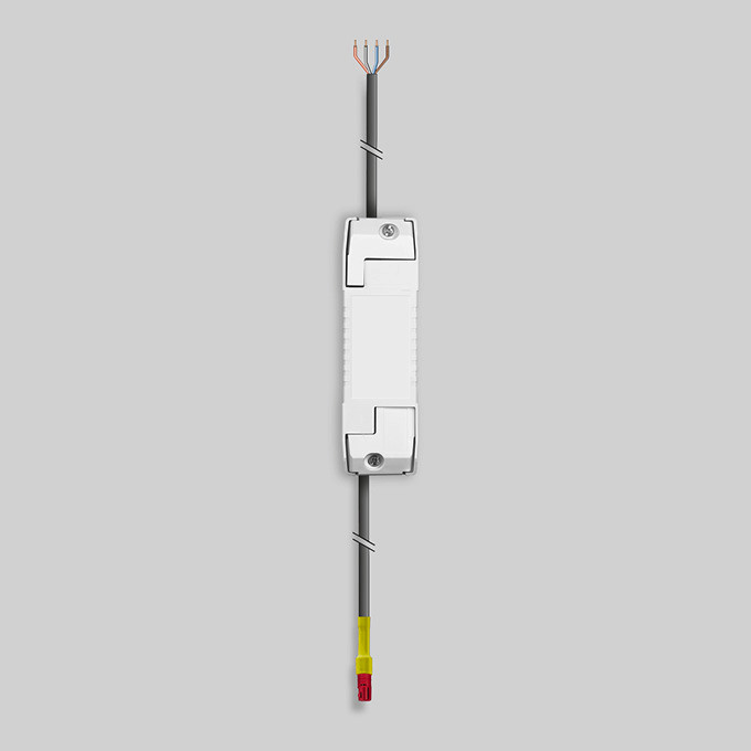 BEGA Netzteil 13204, mit DALI-Schnittstelle für einen Strom von 0,7 A, für den Anschluss von LED-Leuchten mit einer Leistung von 7-37,8 W. Das Netzteil hat eine 2-polige Steckverbindung zur Leuchte. Schutzart IP 20. Schutzklasse II. Primär: 220-240 V, 0/50-60 Hz. Sekundär: 700 mA DC, 7-37,8 W. Das LED-Netzteil ist nur für den Betrieb mit einer LED-Leuchte geeignet. Abmessungen: 44 x 146 x 22 mm.