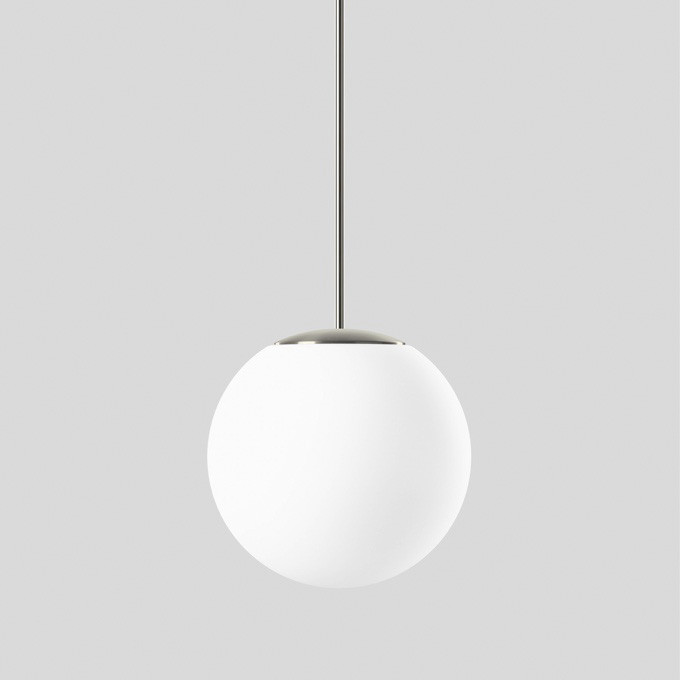 BEGA Pendelleuchte 45727.2K27 für den Innenbereich. Freistrahlendes Licht. Für 1 Lampe mit einer Leistung von max. 150 W, Sockel E 27. inklusive BEGA LED-Leuchtmittel 13565, 12 W, 1400 lm, Farbtemperatur 2700 K. Leuchtengehäuse, Rohrpendel und Baldachin aus Metall. Oberfläche Edelstahl. Mundgeblasenes seidenmattes Opalglas. Kugeldurchmesser 350 mm, Gesamtlänge 1900 mm.