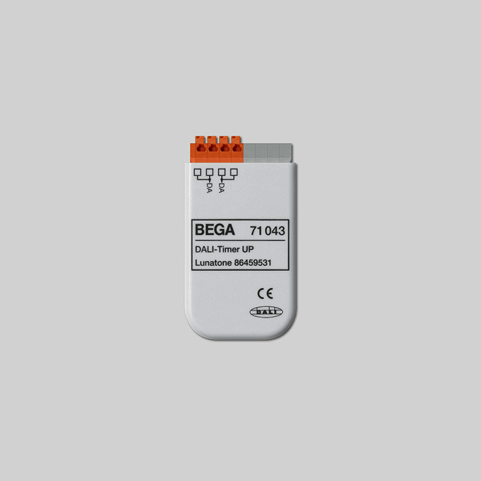 BEGA DALI-Timer 71043 für den Einbau in Schalter- und Hohlraumdosen.Der DALI-Timer kann Schaltuhrfunktionen mit bis zu 28 Einträgen realisieren. Zum Aufrufen von Lichtszenen für LED, Tunable White und RGBW-Leuchten (DT6, DT8, RGBWAF, xy). DALI-Echtzeituhr, interne Batterie, Zeitzone (GMT+1) voreingestellt. Konfiguration und Abfrage von Datum und Uhrzeit über den DALI-Bus. Integrierte Schaltuhrfunktion mit bis zu 28 Einträgen. Jeder Eintrag besteht aus: Status (Aktiv/Inaktiv), 24h Zeitstempel, Wochentag Aktiverungsmaske. Astro-Clock Funktion zur Erstellung von Regeln basierend auf Sonnenauf- und -untergang (ab Firmware-Version 2.4). Anschlussklemmen 0,5-1,5 qmm. Stromversorgung über DALI-Bus. Stromaufnahme < 5mA. Abmessungen: 33 x 60 x 15 mm.