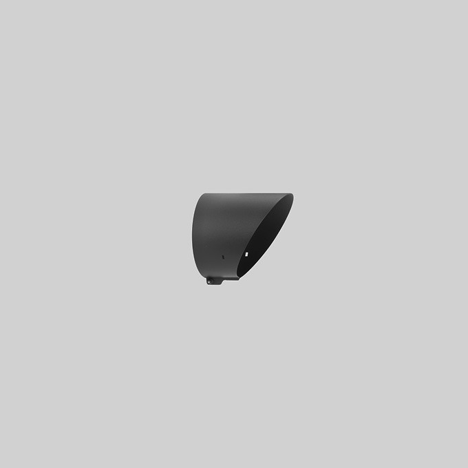 BEGA Blende 71331, aufsteckbar, für BEGA Scheinwerfer. Die Blende ist um 360° montierbar und verhindert den seitlichen Einblick aus einer Richtung bis 45°. Edelstahl, Werkstoff-Nr. 1.4301, pulverbeschichtet, Farbe Grafit.