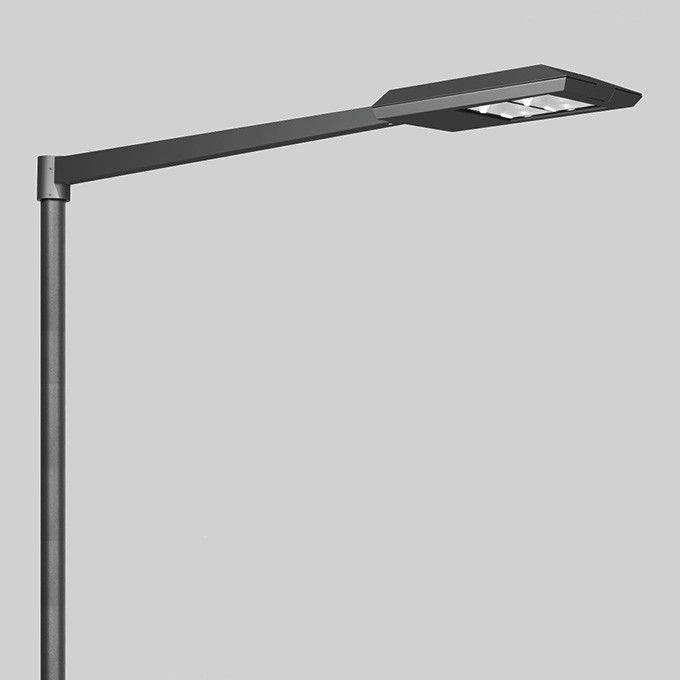 BEGA Aufsatzleuchte 77732AK4 mit Ausleger. Asymmetrisch-bandförmige Lichtstärkeverteilung. Dark Sky: Kein Lichtstromanteil im oberen Halbraum. BEGA Constant Optics® : Effizientes optisches System, das nahezu keinem Verschleiß unterliegt. LED, 67 W Leuchten-Anschlussleistung, Leuchten-Lichtstrom 9885 lm, Farbtemperatur 4000 K. Farbwiedergabeindex (CRI) > 80. Mit austauschbarem BEGA LED-Modul mit einer mittleren Bemessungslebensdauer von > 200.000 Betriebsstunden (L80B50 bei ta = 25 °C). 20-jährige Nachliefergarantie auf das LED-Modul und die Verschleißteile. Mit BEGA Ultimate Driver® LED-Netzteil, DALI-steuerbar, 220-240 V, 0/50-60 Hz. Schutzart IP 66, Schutzklasse II. Leuchte aus Aluminiumguss, Aluminium und Edelstahl Beschichtungstechnologie BEGA Unidure® , Farbe Silber. Sicherheitsglas entspiegelt. Reflektor aus eloxiertem Reinstaluminium. Werkzeugloser Verschluss. Mit fest angeschlossener Anschlussleitung X05BQ-F 4 x 1 mm², Länge 10 m. Mastzopfdurchmesser 76 mm, Einstecktiefe 100 mm. Abmessungen: 340 x 75 x 1900 mm. Für Lichtpunkthöhen von 7000 - 10000 mm.