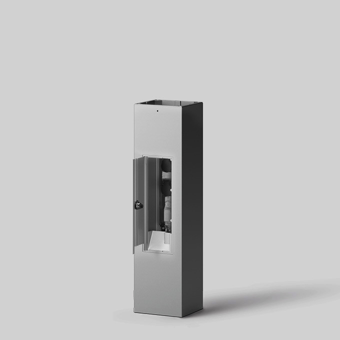 BEGA Pollerleuchtenrohr 84004A für BEGA Systempollerleuchten. Aluminium, Farbe Silber. Für die Verwendung im modularen LED-Pollerleuchtensystem. Mit abschließbarer Tür und BKS Sicherheitsschloss mit zwei Schlüsseln. Eingebaute Komponenten: 2 Schutzkontaktsteckdosen 16 A · 250 V, 1 FI Schutzschalter 4-polig 40 A, 30 mA, 3 Sicherungshalter mit Schraubkappe für Schmelzsicherung Neozed D 01 bis 16 A, Anschlusskasten mit Zugentlastungsschelle zur Durchverdrahtung für drei Kabel bis 5 x 16 qmm. Mit Montageplatte zum Aufschrauben auf ein Fundament oder auf das Erdstück 70896. Abmessungen: 220 x 220 mm. Höhe über Flur 875 mm.