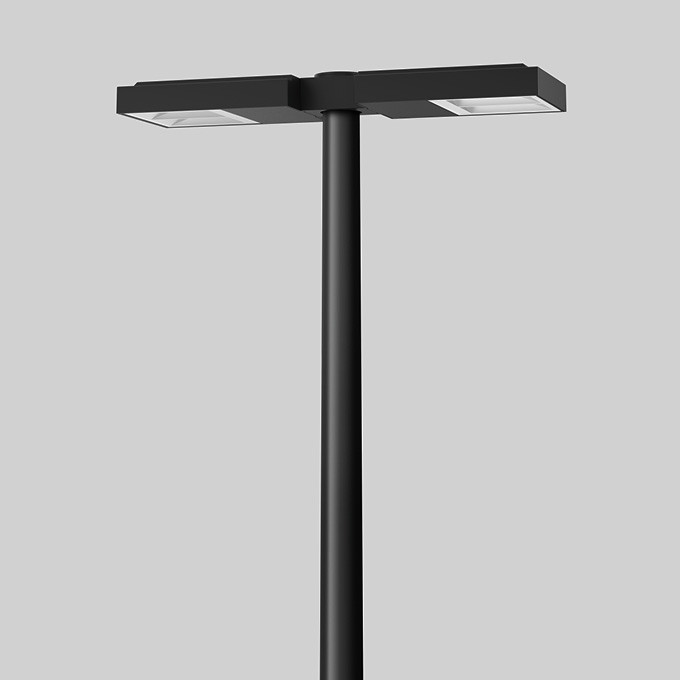 BEGA Aufsatzleuchte 84584K4 in 2-fach-Anordnung. Asymmetrische Lichtstärkeverteilung. Dark Sky: Kein Lichtstromanteil im oberen Halbraum. Lichtlenkung durch alterungsbeständiges, polymerfreies optisches System. BEGA Constant Optics® : Effizientes optisches System, das nahezu keinem Verschleiß unterliegt. LED 33,5 W Leuchten-Anschlussleistung, Leuchten-Lichtstrom 5138 lm, Farbtemperatur 4000 K. Farbwiedergabeindex (CRI) > 80 je Leuchtenkörper. Mit austauschbaren BEGA LED-Modulen mit Übertemperaturschutz und einer Lebenserwartung von mindestens 50.000 Betriebsstunden. 20-jährige Nachliefergarantie auf LED-Module und Verschleißteile. Mit BEGA Ultimate Driver® 2 LED-Netzteilen, DALI-steuerbar, 220-240 V, 0/50-60 Hz. Schutzart IP 66, Schutzklasse II. Leuchte aus Aluminiumguss, Aluminium und Edelstahl Beschichtungstechnologie BEGA Unidure® , Farbe Grafit. Sicherheitsgläser entspiegelt. Reflektoroberfläche aus eloxiertem Reinstaluminium. Mit zwei fest angeschlossenen Anschlussleitungen X05BQ-F 4 x 1 mm², Länge 8 m. Mastzopfdurchmesser 76 mm, Einstecktiefe 100 mm. Mastinnendurchmesser min. 62 / max. 70 mm. Abmessungen: 240 x 60 x 805 mm. Für Lichtpunkthöhen von 5000 - 8000 mm.