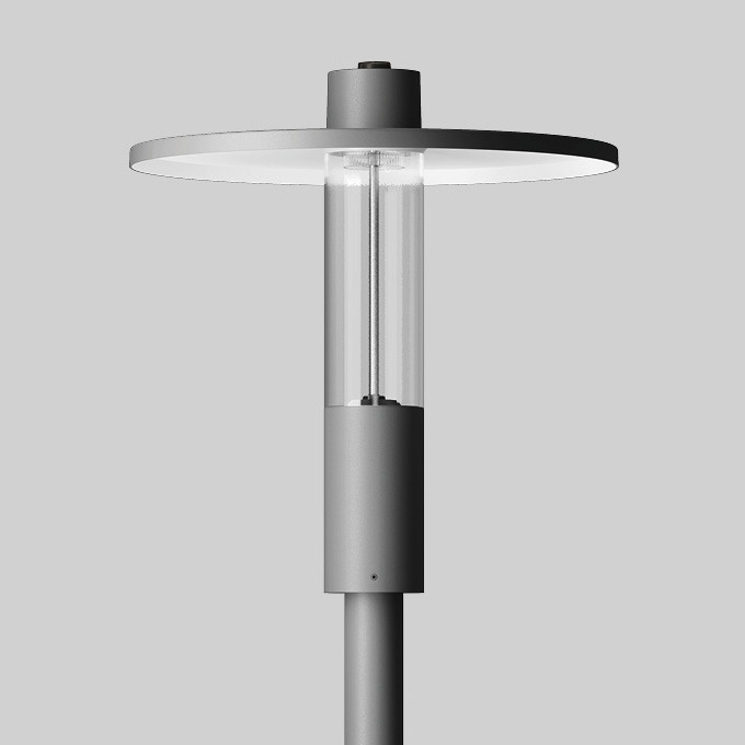 BEGA Aufsatzleuchte 85225AK4. Symmetrische Lichtstärkeverteilung. Dark Sky: Kein Lichtstromanteil im oberen Halbraum. Mit einer nach oben gerichteten Schnittstelle für die Aufnahme von Lichtmanagement-Komponenten nach Zhaga Book 18 Ed. 3.0 (Z-LEX-R), passend für Komponenten Zhaga Book 18 Ed. 3.0 (Z-LEX-M), z.B. Zhaga Air Connector 71 210) LED, 22,5 W Leuchten-Anschlussleistung, Leuchten-Lichtstrom 2056 lm, Farbtemperatur 4000 K. Farbwiedergabeindex (CRI) > 80. Mit austauschbarem BEGA LED-Modul mit einer mittleren Bemessungslebensdauer von > 50.000 Betriebsstunden (L80B50 bei ta = 25 °C). 20-jährige Nachliefergarantie auf das LED-Modul und die Verschleißteile. Mit LED-Netzteil 220-240 V, 0/50-60 Hz. Schutzart IP 65, Schutzklasse II. Leuchte aus Aluminiumguss, Aluminium und Edelstahl Beschichtungstechnologie BEGA Unidure® , Farbe Silber. Kunststoffzylinder klar, mit optischer Struktur. Reflektor aus eloxiertem Reinstaluminium. Mit fest angeschlossener Anschlussleitung H05RN-F 2 x 1 qmm, Länge 6 m. Mastzopfdurchmesser 76 mm, Einstecktiefe 65 mm. Abmessungen Ø 650 x 690 mm. Für Lichtpunkthöhen von 4000 - 6000 mm.