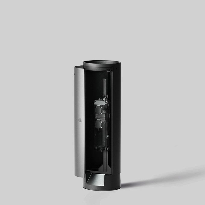 BEGA Pollerleuchtenrohr 99627 für BEGA Systempollerleuchten. Aluminium, Farbe Grafit. Für die Verwendung im modularen LED-Pollerleuchtensystem. Mit abschließbarer Tür und BKS Sicherheitsschloss mit zwei Schlüsseln. Eingebaute Komponenten: 2 Schutzkontaktsteckdosen 16 A · 250 V, 1 FI-Schutzschalter 4-polig 40 A, 30 mA, 3 Sicherungshalter mit Schraubkappe für Schmelzsicherung Neozed D 01 bis 16 A, Anschlusskasten mit Zugentlastungsschelle zur Durchverdrahtung für drei Kabel bis 5 x 16 qmm. Mit Montageplatte zum Aufschrauben auf ein Fundament oder auf das Erdstück 70896. Höhe 875 mm. Durchmesser: 265 mm.