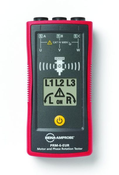 Schaffen Sie Klarheit bei 3-Phasen-Systemen: Beim Einbauen und Verbinden von 3-Phasen-Motoren und -Systemen ist es wichtig zu prüfen, ob Motor-Drehrichtung und Drehfeldrichtung der Verkabelung stimmen. Falsche Verbindungen können die Drehrichtung des Motors umkehren und dadurch den Motor und die von ihm betriebene Ausrüstung beschädigen. Der PRM-5-EUR kann ohne Batterie betrieben werden und ist ein einfacher und zuverlässiger Prüfer für die richtige Drehfeldrichtung bei dreiphasigen Kabeln und Steckdosen. Der PRM-6-EUR verfügt zusätzlich zur Funktionalität des PRM-5-EUR über ein klares, beleuchtetes LCD-Display und kann mithilfe von Messleitungen die Motor-Drehrichtung getrennter Motoren prüfen. Eine fortschrittliche Funktion des PRM-6 ist die berührungslose Erkennung der Motor- Drehrichtung, die die Drehrichtung des Motors ohne Messleitungen erfasst. Von besonderem Nutzen ist dies bei schnell laufenden Motoren, bei denen die Motor- Drehrichtung nicht visuell erfasst werden kann, oder wenn