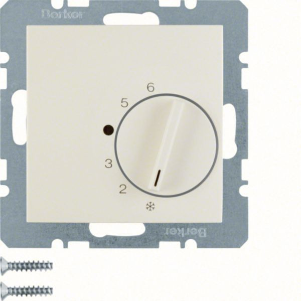 Wechsler: Schaltstrom "Heizen" 10 A (4 A bei cos phi 0,6), Schaltstrom "Kühlen" 5 A (2 A bei cos phi 0,6) Temperaturregler mit Wechsler und Zentralstück S.1/B.3/B.7 weiß, glänzend