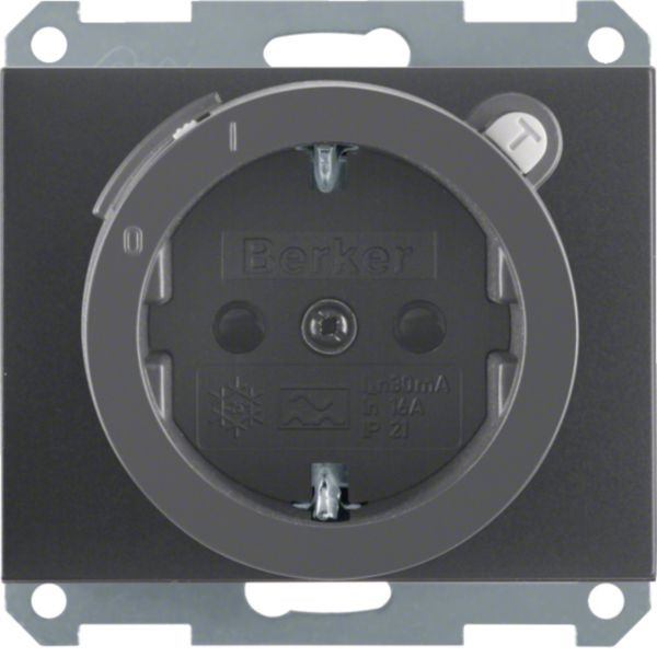 Steckdose SCHUKO mit FI-Schutzschalter u. erh.BS K.1 anthrazit, matt
