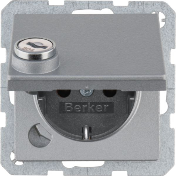 SCHUKO Steckdose m. Steckklemme,Klappd.,Schloss, Q.1,alu matt,lackiert