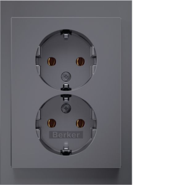 Doppelsteckdose SCHUKO mit Abdeckplatte, Berker K.5, edelstahl matt, lackiert
