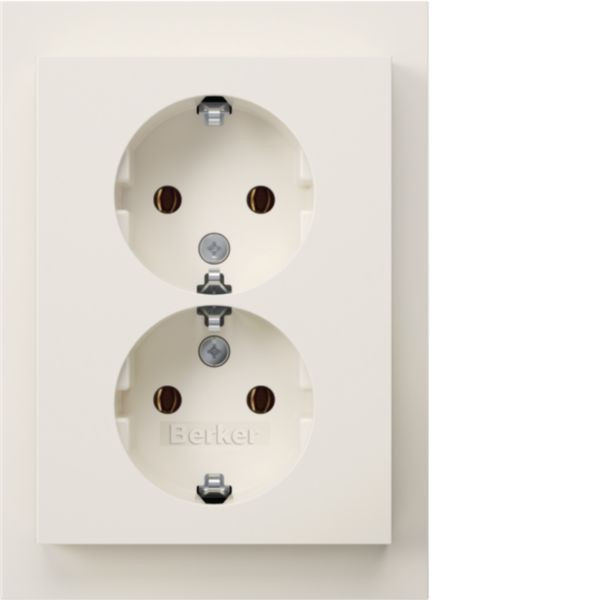 Doppelsteckdose SCHUKO mit Abdeckplatte, Berker K.1, polarweiß glänzend