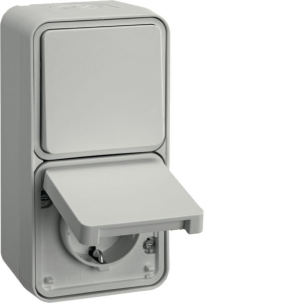 Kombination Wechselschalter/Steckdose SCHUKO mit Klappdeckel AP, W.1, polarweiß