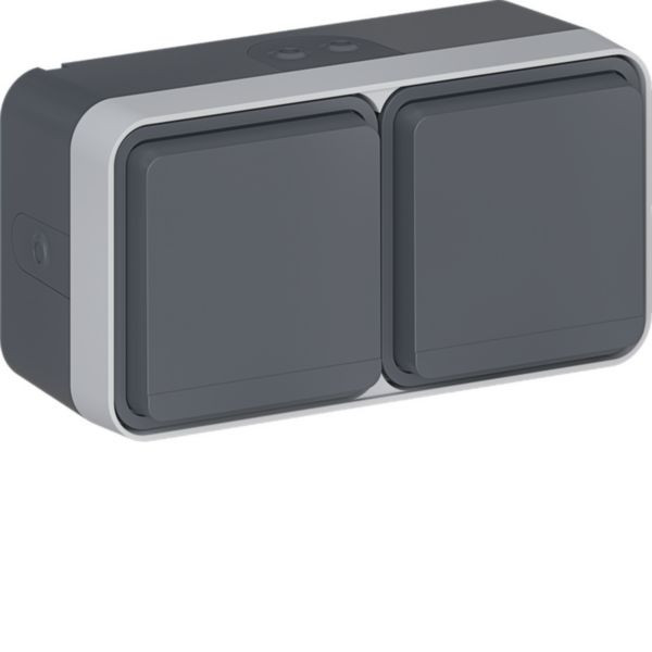 Steckdose Schutzkont.stift 2fach waag.,erh. BS u. Klappd., 4 Einf. AP W.1 ECO gr