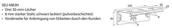 | Kurzbeschreibung | Befestigungswinkel für Not-Halt-Schalter Typ SEU-4 (runde Bauform), 3 x 30 mm Loch, Metall, schwarz |