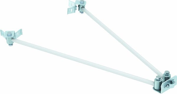 Iso-Combi-Set aus mehreren Bauteilen zum Einhalten des Trennungsabstandes zu elektrisch leitenden Teilen nach VDE 0185-305-3 (IEC 62305-3) bei isolierten Fangeinrichtungen. Zur Aufnahme von Fangstangen und Rundleitern mit 8, 16 und 20 mm Durchmesser. Rohr-V-Befestigung, zum Montieren mit Spannband an Rohren mit Ø = 600 mm. Inklusive Spannschloss. UV-stabilisiert, witterungsbeständig, Dauertemperaturbereich -50°C bis + 100°C. Materialfaktor km= 0,7.