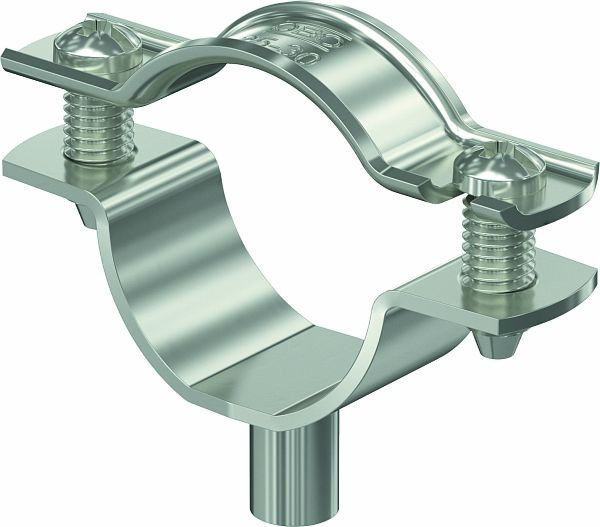 Abstandschelle zur Montage von Rohren und Kabeln an Wand, Decke und Boden. Mit selbstsicherndem Oberteil. Befestigung über Ansatz mit Innengewinde.