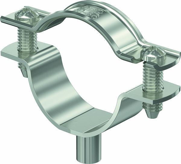 Abstandschelle zur Montage von Rohren und Kabeln an Wand, Decke und Boden. Mit selbstsicherndem Oberteil. Befestigung über Ansatz mit Innengewinde. Zugelassen für den Funktionserhalt nach DIN 4102 Teil 12, Funktionserhaltklassen E 30 bis E 90.