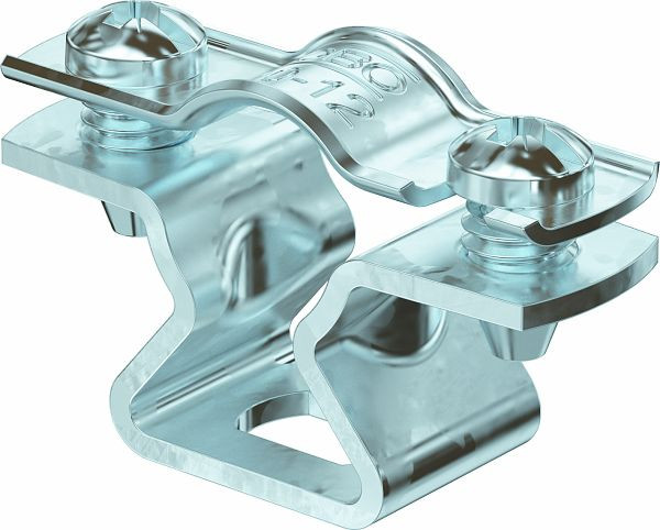 Abstandschelle zur Montage von Rohren und Kabeln an Wand, Decke und Boden. Mit selbstsicherndem Oberteil. Befestigung über Langloch.