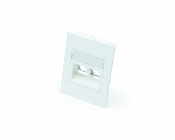 Trägerplatte (inkl. Beschriftungsfeld und Schrägauslass) für Keystone-Module. Breite der Öffnung: 14,9 mm; Höhe der Öffnung: 20,2 mm