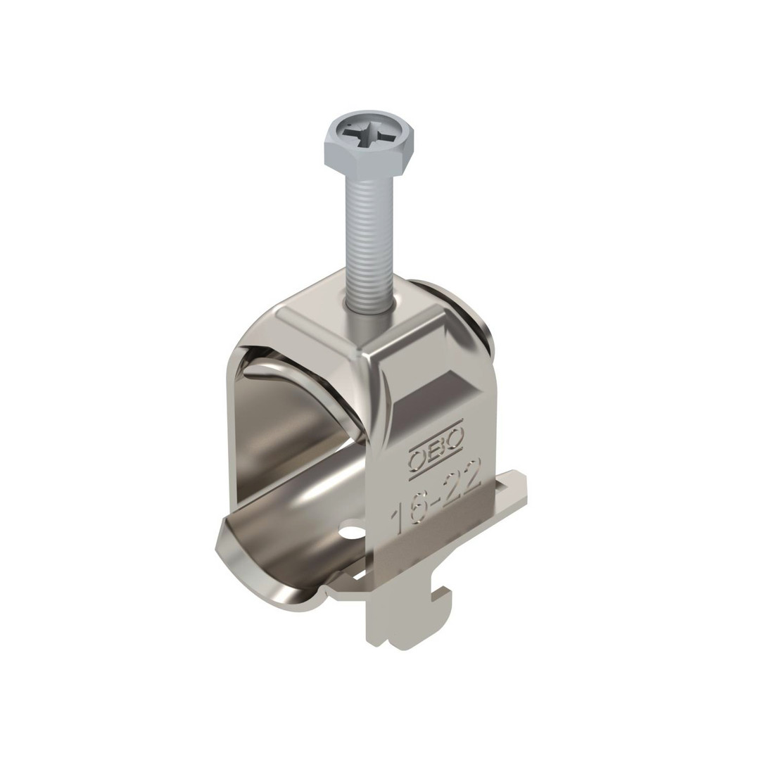 Bügelschelle mit N-Fuß, Metalldruckwanne mit gerundeten Kanten für den Kabelschutz. Zum elektrischen Anschluss des Schirmgeflechtes von abgeschirmten Leitungen. Zur vertikalen und horizontalen Montage von 1 Einzelkabel an C-Profilschiene. Für Schlitzweite 11 - 12 mm. Mit 1-gängiger Schraube an Druckwanne, universeller Sechskant-Schraubenkopf SW10, mit Schlitz und Kreuzschlitz. Geeignet für Montage im Innen-und Außenbereich. Der Leitungsschirm kann auch für den Potentialausgleich genutzt werden, wenn beide Enden mit dem Bezugspotential verbunden sind. Gegenwanne im Lieferumgang enthalten.