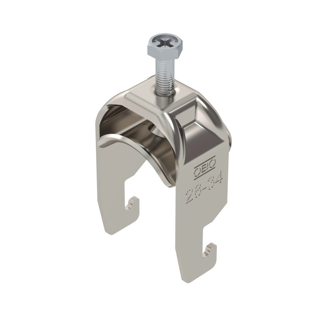Bügelschelle mit U-Fuß, Metalldruckwanne mit gerundeten Kanten für Kabelschutz. Zur vertikalen und horizontalen Montage von 1 Einzelkabel an C-Profilschiene. Für Schlitzweite 18 - 22 mm. Mit 1-gängiger Schraube an Druckwanne, universeller Sechskant-Schraubenkopf SW10, mit Schlitz und Kreuzschlitz. Geeignet für Montage im Innen-und Außenbereich. Der Einsatz einer Gegenwanne wird empfohlen.