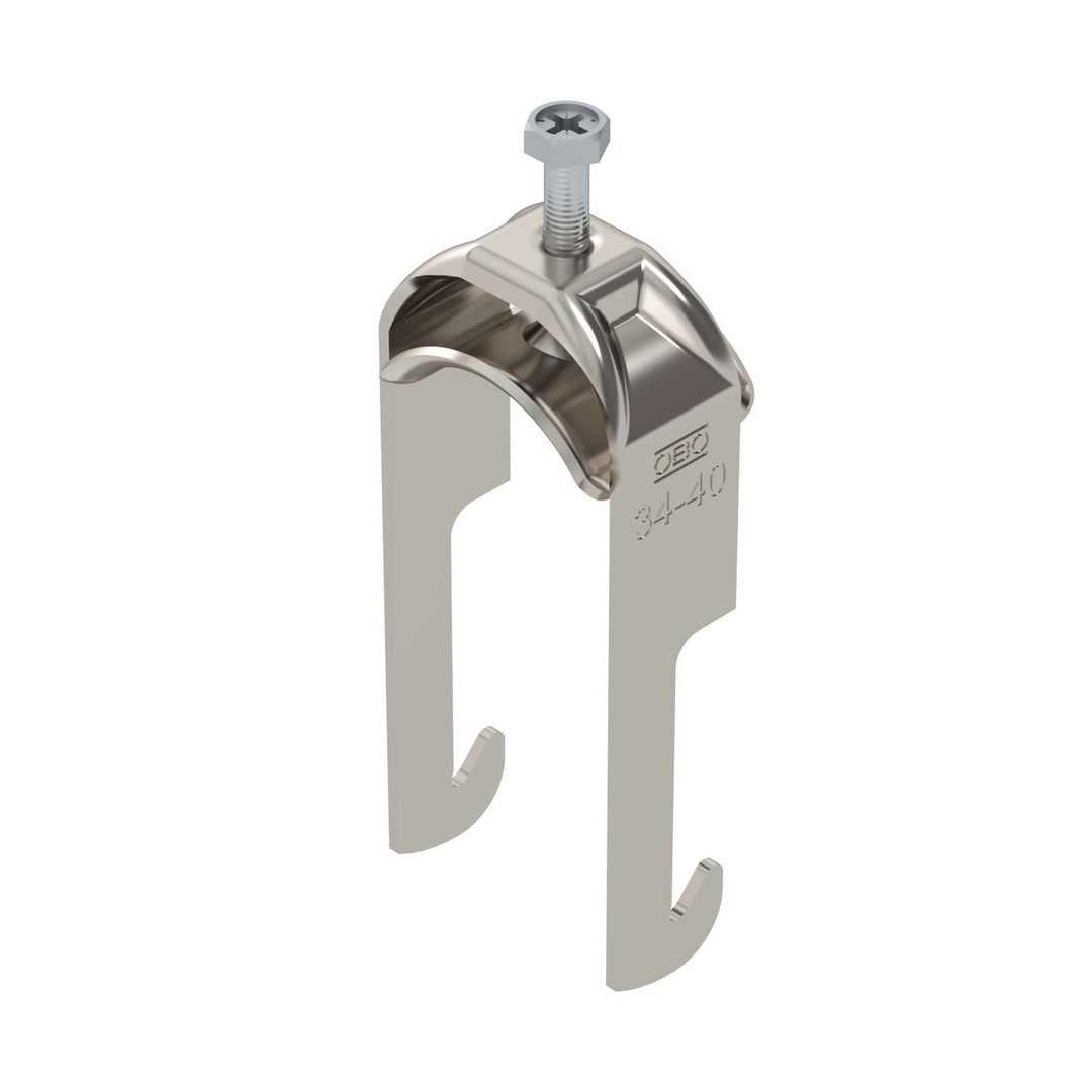 Bügelschelle mit W-Fuß, Metalldruckwanne mit gerundeten Kanten für Kabelschutz. Zur vertikalen und horizontalen Montage von 1 Einzelkabel an Winkeleisen mit 40 mm Schenkellänge. Mit 1-gängiger Schraube an Druckwanne, universeller Sechskant-Schraubenkopf SW10, mit Schlitz und Kreuzschlitz. Geeignet für Montage im Innen-und Außenbereich. Der Einsatz einer Gegenwanne wird empfohlen.
