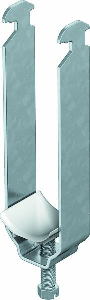 Schelle und Schraube aus tauchfeuerverzinktem Stahl, Druckwanne aus Polypropylen, halogenfrei, Farbe Lichtgrau RAL 7035.