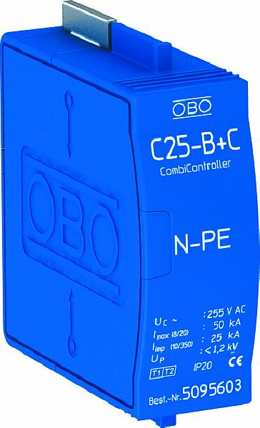 Steckbare Summen-Funkenstrecke zum Einsatz zwischen Neutralleiter (N) und Schutzleiter (PE). Geeignet zum Einsatz in Kombination mit:
