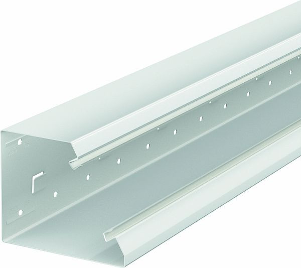 GEK-S Geräteeinbaukanal zur Installation an Arbeitstischen etc. geeignet. Die Sichtflächen der lackierten GEK-S Geräteeinbaukanäle sind foliert. Das Kanalsystem verfügt über selbstkontaktierende Rastlaschen zur Aufnahme einer Trennwand aus Stahlblech. Der Potentialausgleich zwischen den Kanalunterteilen erfolgt über die Kupplung. Zwischen Oberteil und Unterteil wird die Schutzmaßnahme und der Potentialausgleich durch die selbstkontaktierende Kanalabdeckung gewährleistet. Die Systemöffnung beträgt real 76,5 mm. Das Oberteil muss separat bestellt werden.