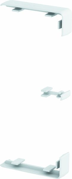 Stoßstellenabdeckung für das Unterteil der Geräteeinbaukanäle Rapid 45-2 zum Kaschieren von Schnittkanten und für eine einwandfreie Verbindung der Kanalsegmente. Die Stoßstellenabdeckungen werden aufgesteckt. Passend für die Kanalbreite 130 mm.