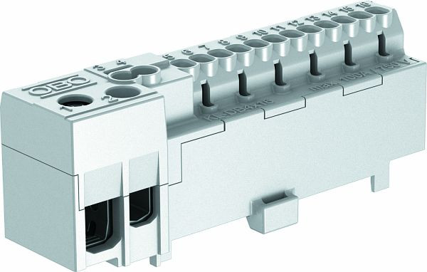 Phasen- Anschlußklemme mit 12 Steckklemmstellen 2,5mm²; zwei Steckklemmstellen 4 mm² und zwei Schraubeanschlußklemmstellen 16/25mm².