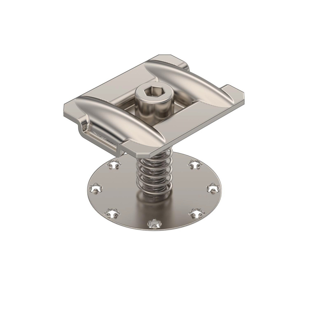 Zwischenklemme mit Feder zum Befestigen von Photovoltaik-Modulen auf Trägerprofilen. Geeignet für Schlitzweite 10 mm. Schraubbare Befestigung des PV-Moduls mit Innensechskant-Schlüssel Größe 6.
