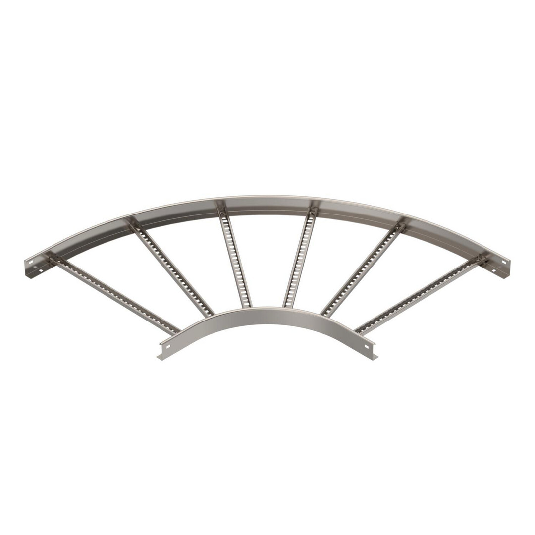 Bogen 90° horizontal mit geschweißter Sprosse für alle Kabelleitertypen mit der Seitenhöhe 60 mm.