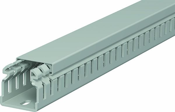 LKV Verdrahtungskanal nach DIN EN 50085-2-3 mit Bodenlochung zur Montage in Schaltschränken, Nennmaß = Aussenmaß, mit UL-Zulassung Verdrahtungskanal nach DIN EN 50085-2-3 inkl. Oberteil und Bodenlochung zur waagerechten und senkrechten Verlegung elektrischer Kabel und Leitungen im Schaltschrank. Ausführung als DIN-Kanal. Das Ausbrechen der Stege erfolgt werkzeuglos. Bodenbündiges Ausführen ist durch Sollbruchstellen möglich. Geprüft nach DIN EN 50085-2-3. Sonderlängen auf Anfrage.