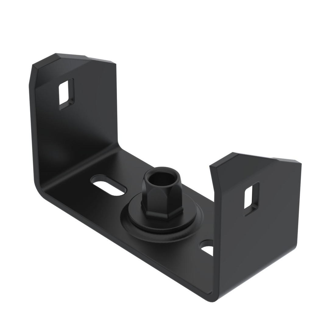 Mittenabhängung für Kabelrinnen mit eingerolltem Seitenholm in der Seitenhöhe 60 mm. Schwarz beschichtet.