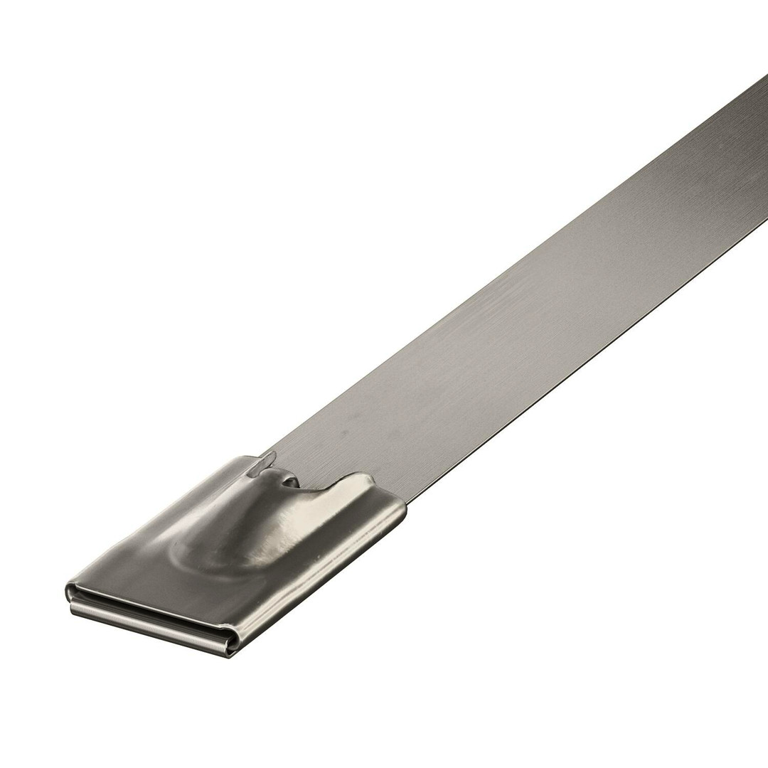 Bandschelle aus Metall in glatter Ausführung mit Kugelverschluss. Zur hochtemperatur- und witterungsbeständigen Fixierung. Zum Spannen Zange MBS-Z verwenden.