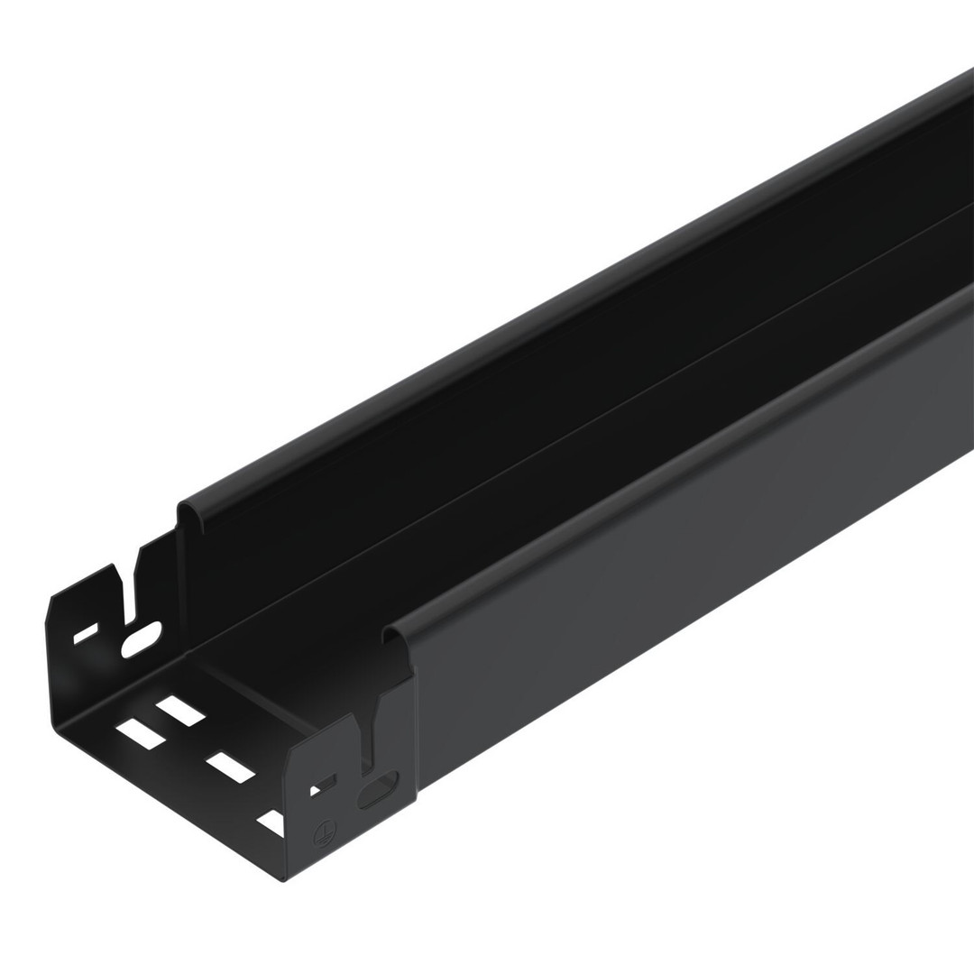 Ungelochte Kabelrinne mit integriertem Schnellbefestigungssystem. Schwarz beschichtet.