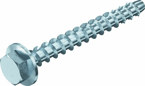 Schraubanker zur direkten Montage ohne Dübel in gerissenem und ungerissenem Beton sowie Mauerwerk. Mit Sechskantantrieb und angepresster Scheibe zur Aufnahme großer Lasten. Geeignet für die Befestigung von Hängestielen und Wandauslegern in Feuchträumen und im Außenbereich.